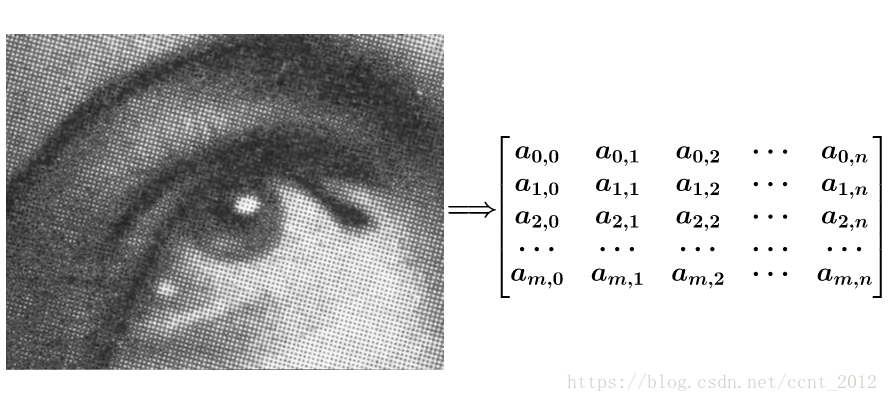 然后用下面这个平均矩阵(说明下,原图的处理实际上用的是正态分布矩阵,这里为了简单,就用了算术平均矩阵)来平滑图像: