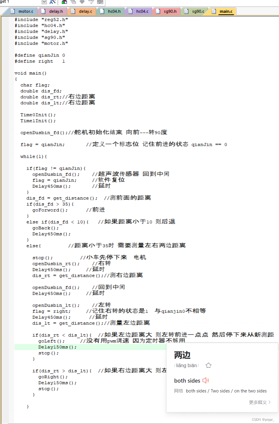 如果是dir 距离大于35 则前进,当dir小于35时左右摇头,并测量左右距离-----当不测左右距离时又回到超声波又回到正前方----但是会一卡一卡 用宏定义来解决一卡一卡问题