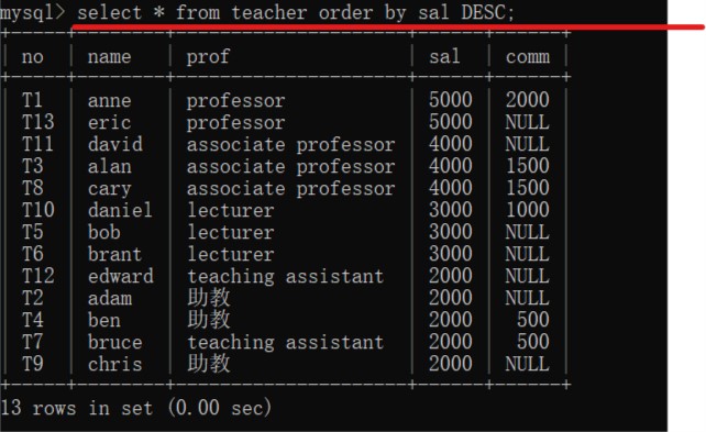 倒序排序:select * from 表名 order by 字段名 DESC;
