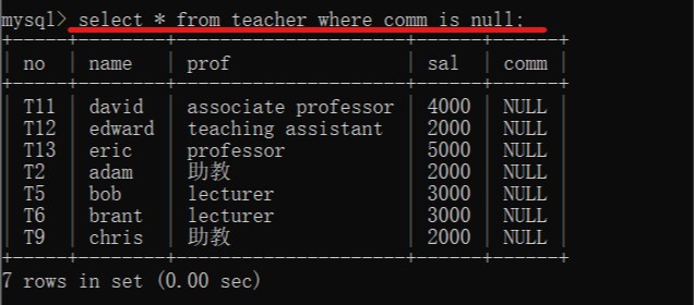 字段为空:字段名 is null