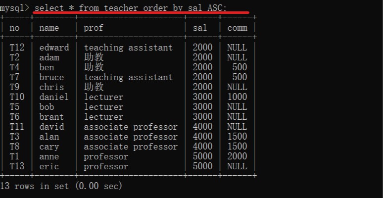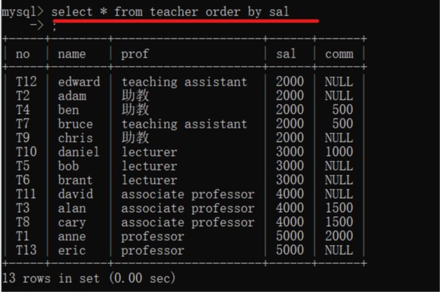 select * from 表名 order by 字段名 ASC;