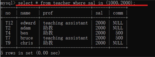 字段名 in (值1,........,值n);