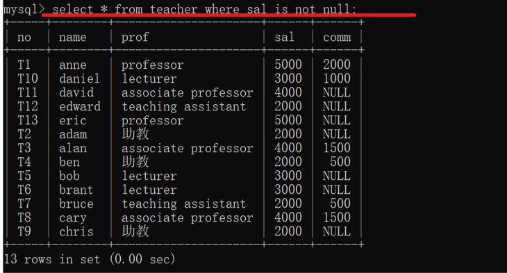 字段不为空:字段名 is not null