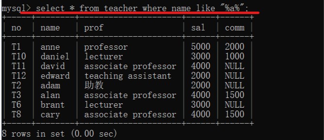 模糊查询:%代替任意长度字符串