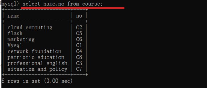 查询表中部分字段数据:select 字段1,字段2 from 表名;