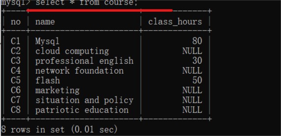 查询表中所有字段数据:select * from 表名;