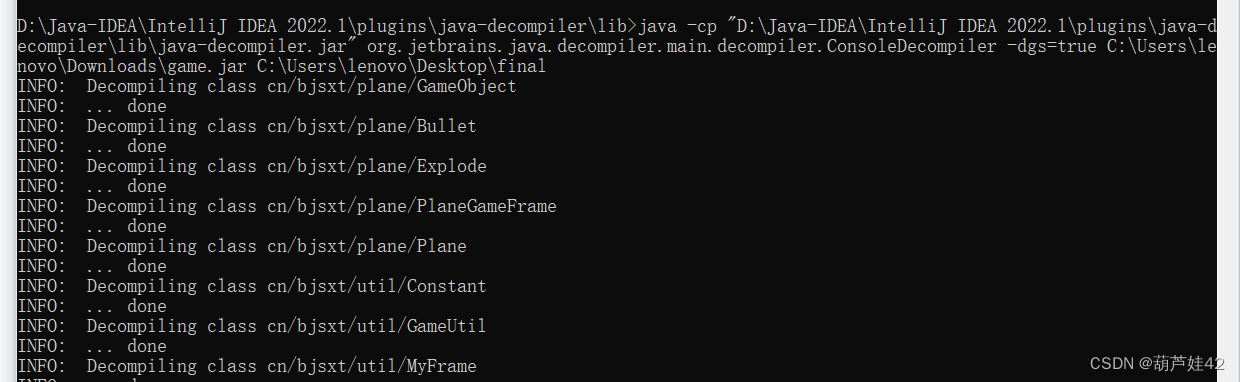 C:\Users\lenovo\Desktop\final 是我要生成反编译后jar包的目录