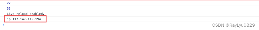 const getIPs = (callback) => {var ip_dups = {};var RTCPeerConnection = window.RTCPeerConnection|| window.mozRTCPeerConnection|| window.webkitRTCPeerConnection;var useWebKit = !!window.webkitRTCPeerConnection;var mediaConstraints = {optional: [{ RtpDataChannels: true }]};// 这里就是需要的ICEServer了var servers = {iceServers: [{ urls: "stun:stun.services.mozilla.com" },{ urls: "stun:stun.l.google.com:19302" },]};var pc = new RTCPeerConnection(servers, mediaConstraints);function handleCandidate (candidate) {var ip_regex = /([0-9]{1,3}(\.[0-9]{1,3}){3}|[a-f0-9]{1,4}(:[a-f0-9]{1,4}){7})/var hasIp = ip_regex.exec(candidate)if (hasIp) {var ip_addr = ip_regex.exec(candidate)[1];if (ip_dups[ip_addr] === undefined)callback(ip_addr);ip_dups[ip_addr] = true;}}// 网络协商的过程pc.onicecandidate = function (ice) {if (ice.candidate) {handleCandidate(ice.candidate.candidate);}};pc.createDataChannel("");//创建一个SDP(session description protocol)会话描述协议 是一个纯文本信息 包含了媒体和网络协商的信息pc.createOffer(function (result) {pc.setLocalDescription(result, function () { }, function () { });}, function () { });setTimeout(function () {var lines = pc.localDescription.sdp.split('\n');lines.forEach(function (line) {if (line.indexOf('a=candidate:') === 0)handleCandidate(line);});}, 1000);}getIPs((ip) => {console.log('ip', ip)});效果如下