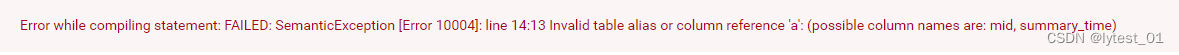 ![hive sql报错:SQL 错误 [10004] [42000]: Error while compiling statement: FAILED: SemanticException [Error](https://img-blog.csdnimg.cn/c0806e12b3b34fc6bcd91dda921424e0.png)