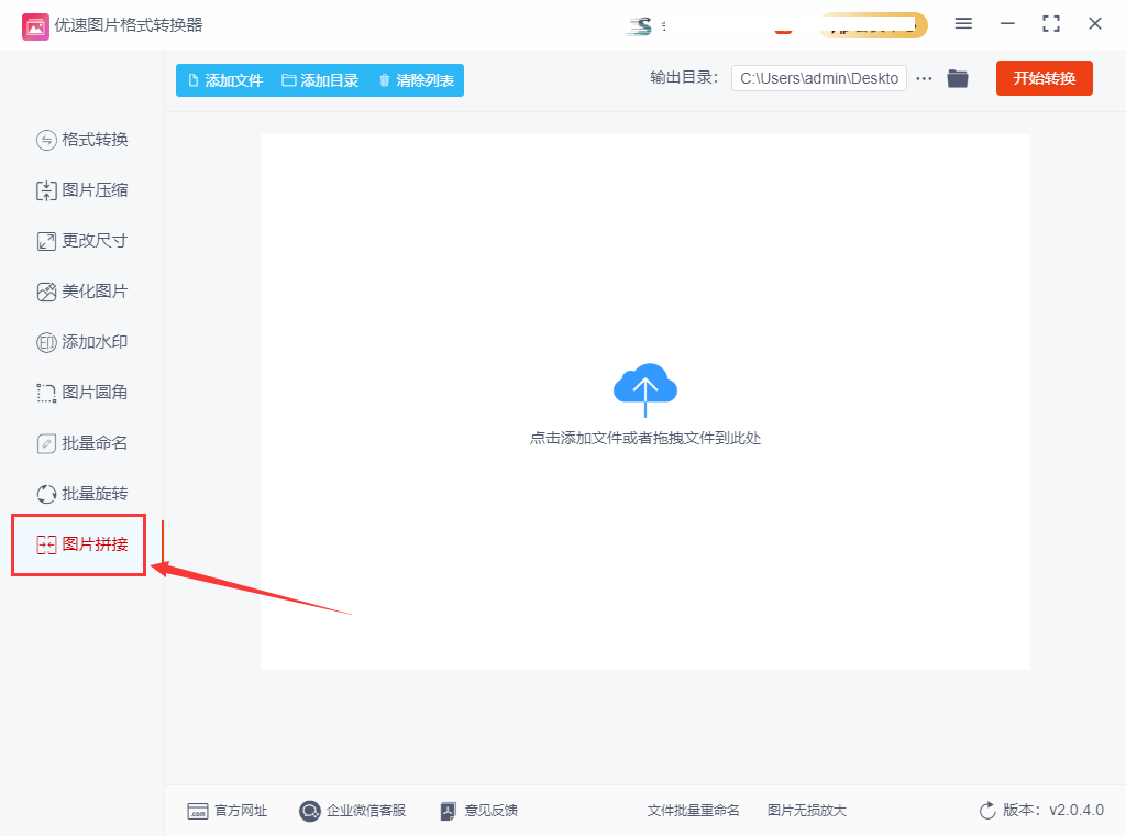 操作步骤1:下载使用软件,将“优速图片格式转换器”工具下载安装的电脑上,然后双击打开,在软件首页面的功能中找到【图片拼接】功能。