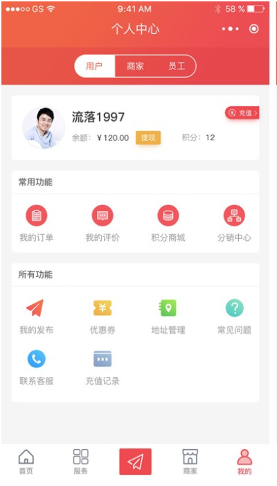 ·发布服务订单·查看订单状态挑选服务人员/商家