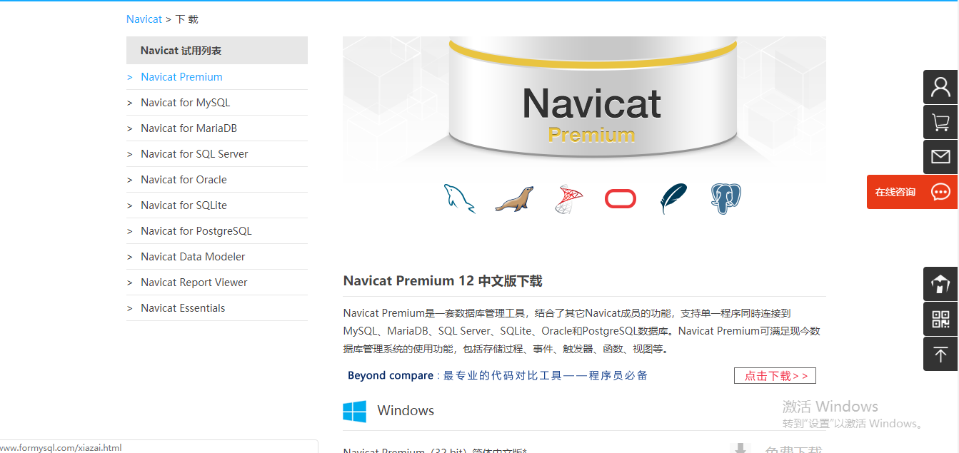(1)下载Navicat Premium,这个是下载官方网:http://www.formysql.com/xiazai.html
