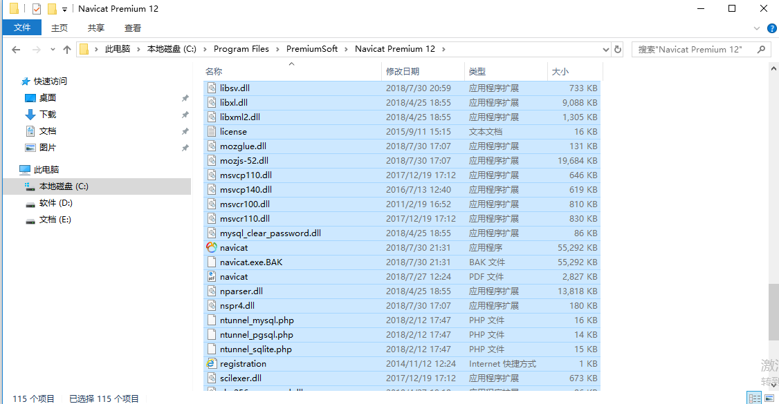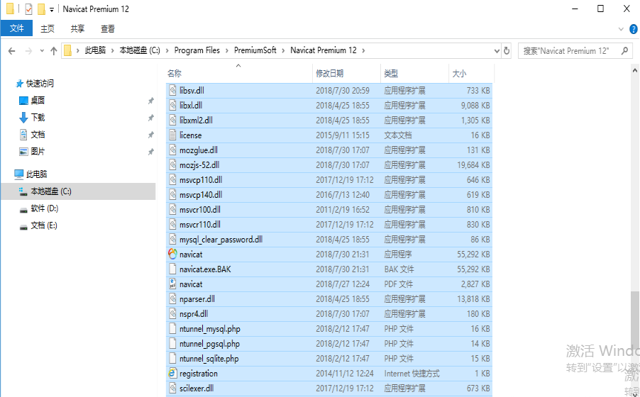 (3)下载完成了的话,就可以进行安装了,要安装的话,就在Navicat Premiun文件路径下找到Navicat,点击它进行安装