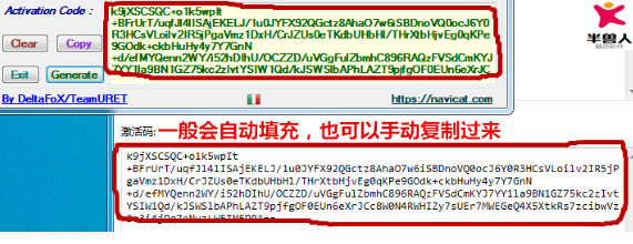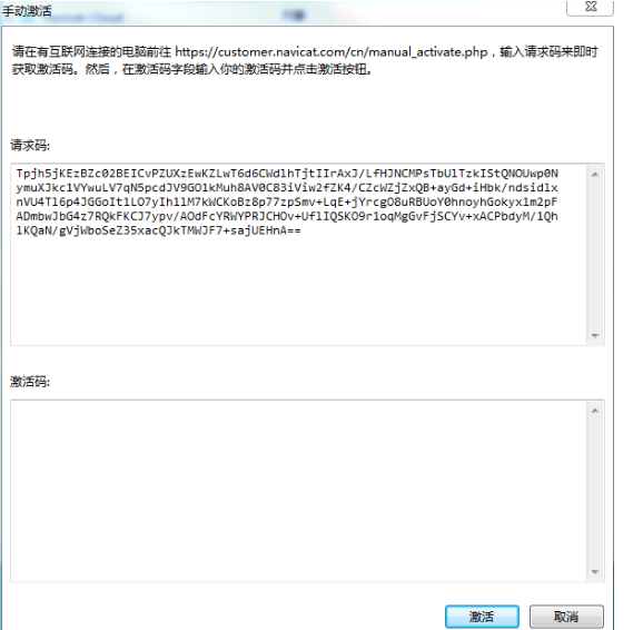 之后Activation Code框会生成激活码,这个激活码会自动填充到Navicat手动激活窗口的激活码框中,您也可以手动复制过去。