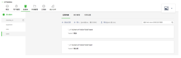 点击云开发 , 打开云开发控制台,云开发控制台提供如下能力(云函数中对数据库的操作等同于在控制台直接操作数据库)