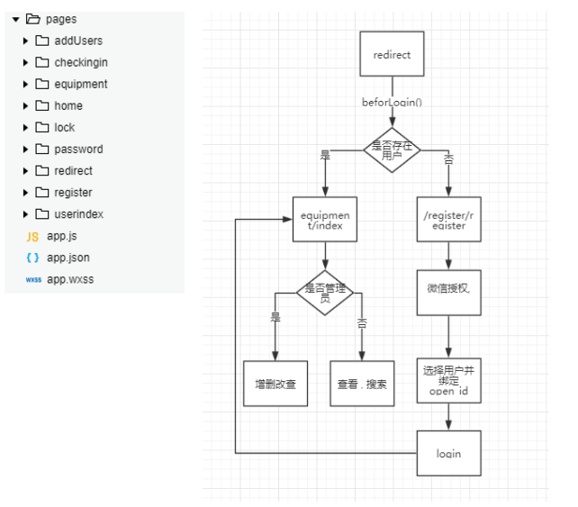 - 需求总结: 普通员工通过查看设备现状 , 找到可以状态的设备 , 并汇报管理员 , 管理员通过小程序切换设备状态 , 绑定使用人 ; 管理员逐月导入考勤数据 , 员工可通过小程序查看个人考勤情况;