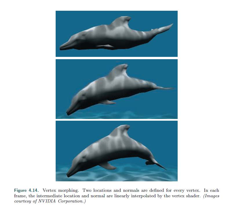 顶点变形。为每个顶点定义了两个位置和法线。在每一帧中,顶点着色器对中间位置和法线进行线性插值。(图片由英伟达公司提供。)