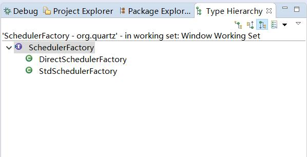 SchedulerFactory是个接口,有两个实现类,在Eclipse下按下F4可以看到其继承图,如下图所示: