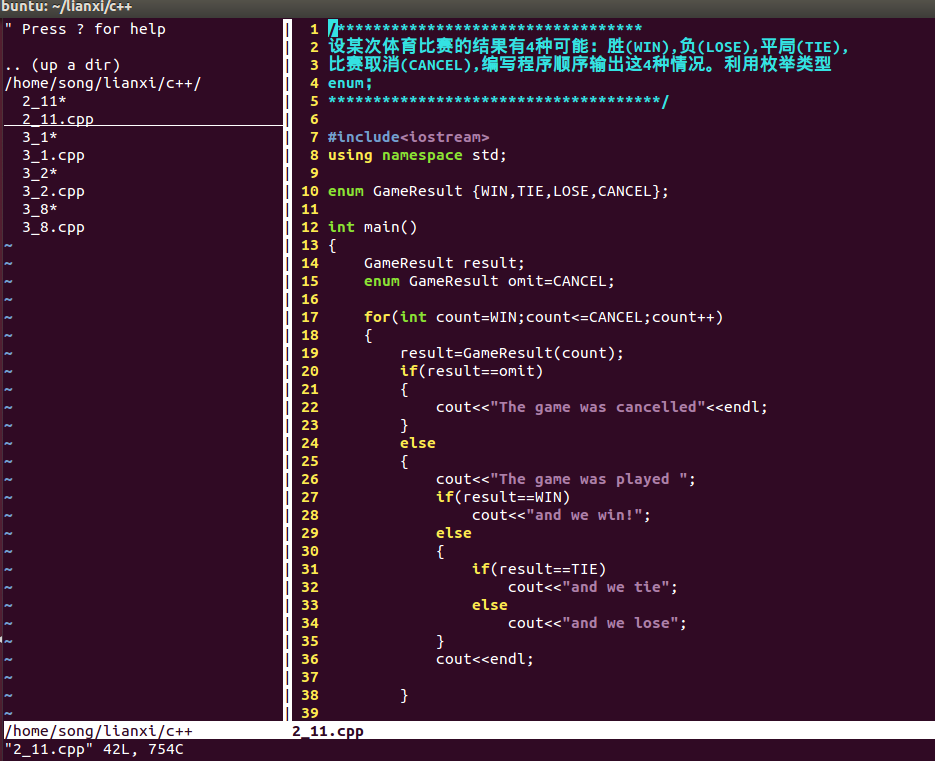 无意中看到实验室的朋友使用的vim竟然能在左边显示树形目录,感觉很方便,这样子文件夹有什么文件一目了然。她说是一个插件叫NERDTree,安装执行后的效果如下,不是你想要的效果就别安了。我的系统是Ubuntu12.04,版本不同可能 .vim 所在的目录不同。本节用到的压缩包已经上传到网站,如有需要,请自行下载。点此下载