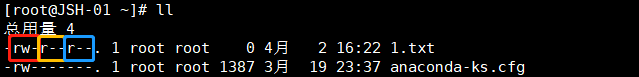 第三段:除所有者、所属组之外,其他用户的权限 r--(详见下图蓝色)