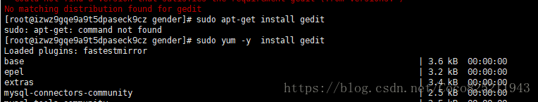 使用管理员身份下载gedit,使用命令:sudo yum -y install gedit