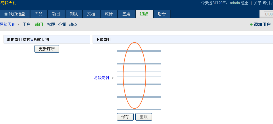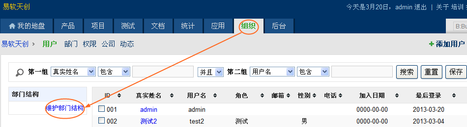 - 使用管理员登录禅道系统,进入“组织”页面。
