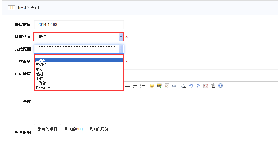 - 如果选择了“拒绝”,则需要给出相应的拒绝原因,拒绝原因可以有: