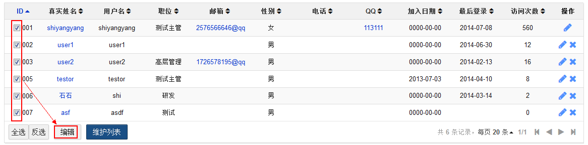 除了批量添加用户,还可以在用户列表页面选择用户,进行批量编辑。