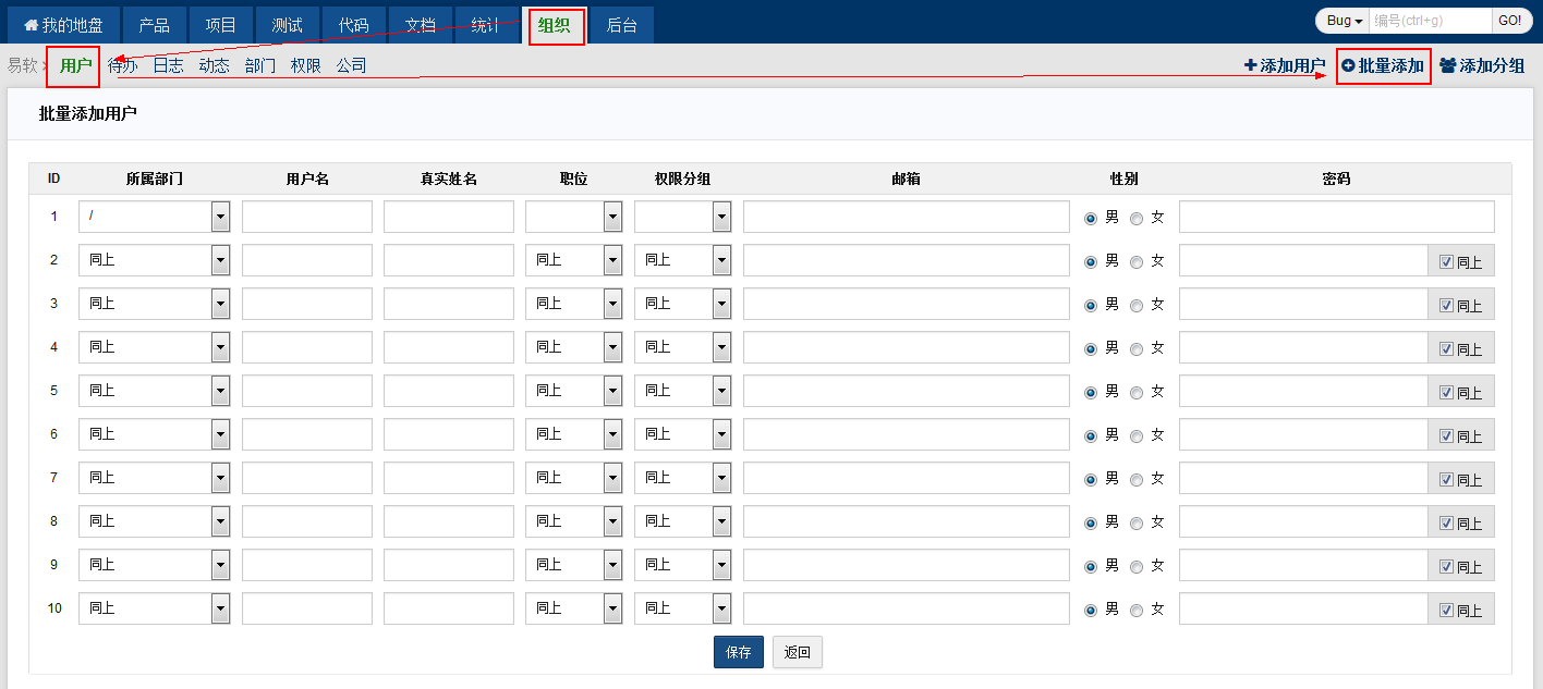 部门创建之后,下一步的操作就是往系统中添加用户。步骤如下: