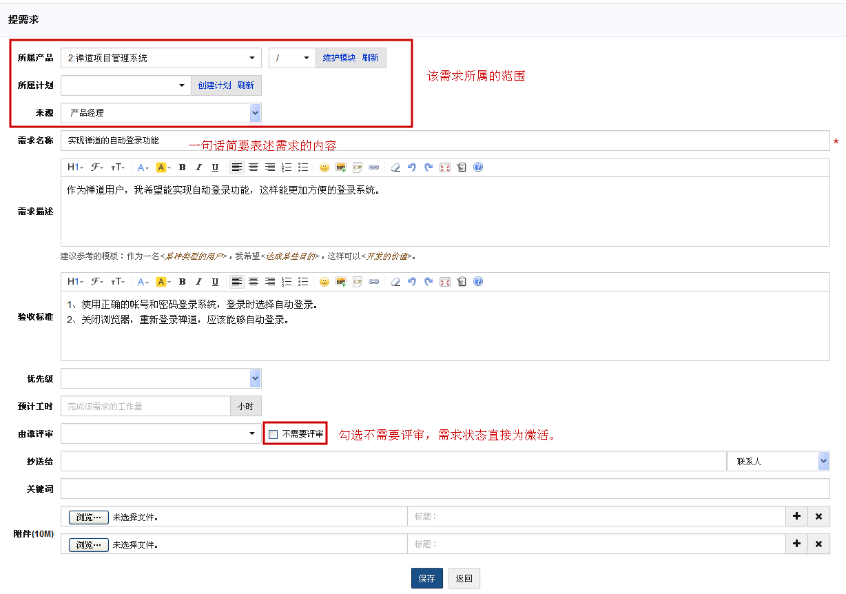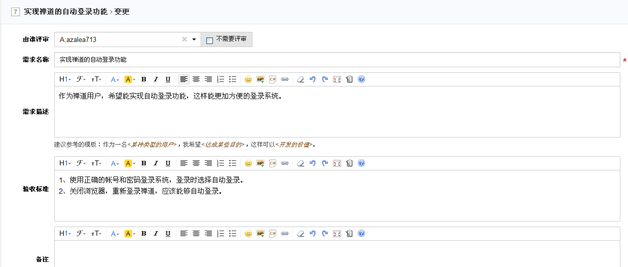 注意:一般来讲需求评审可以是一个线下的评审会议,在禅道里面记录下参与需求评审的人员即可。