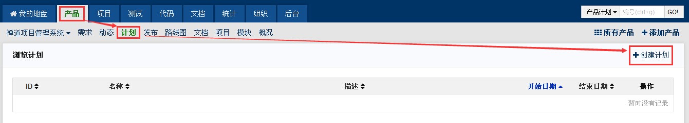 - 出现计划列表页面,点击页面右侧的“创建计划”,即可出现计划增加页面。