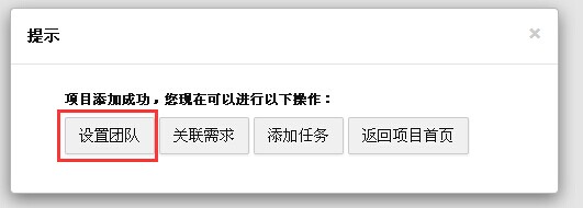 8.2 当项目创建成功之后,可以根据提示设置团队。