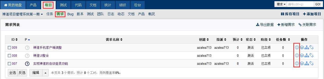 在禅道中创建项目并关联相应的需求
