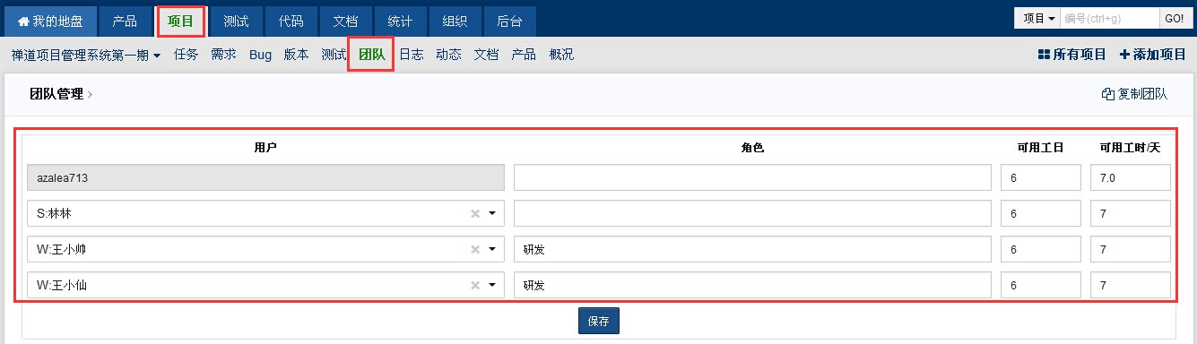 或者从项目视图中的团队菜单,也可以进行项目的团队管理。