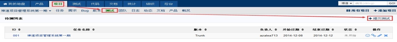 - 然后选择“提交测试”,即可出现提交测试的页面。