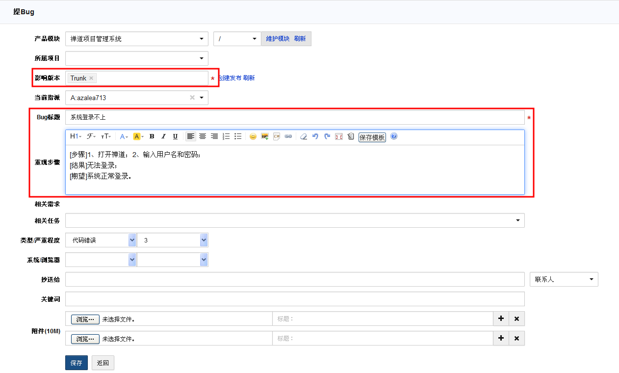 影响版本是必填的,来源于项目的版本,如果没有版本可选的话,则需要到该项目-版本中创建版本