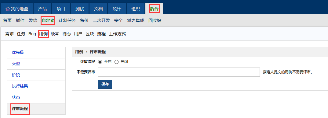 用例的评审功能,禅道里默认是关闭的。