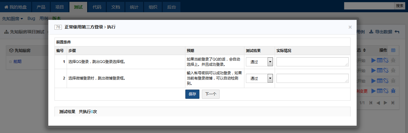 禅道中的测试用例,彻底的将测试用例步骤分开,每一个测试用例都有若干个步骤组成,每一个步骤都可以设置自己的预期值。这样可以非常方便进行测试结果的管理和bug的创建。