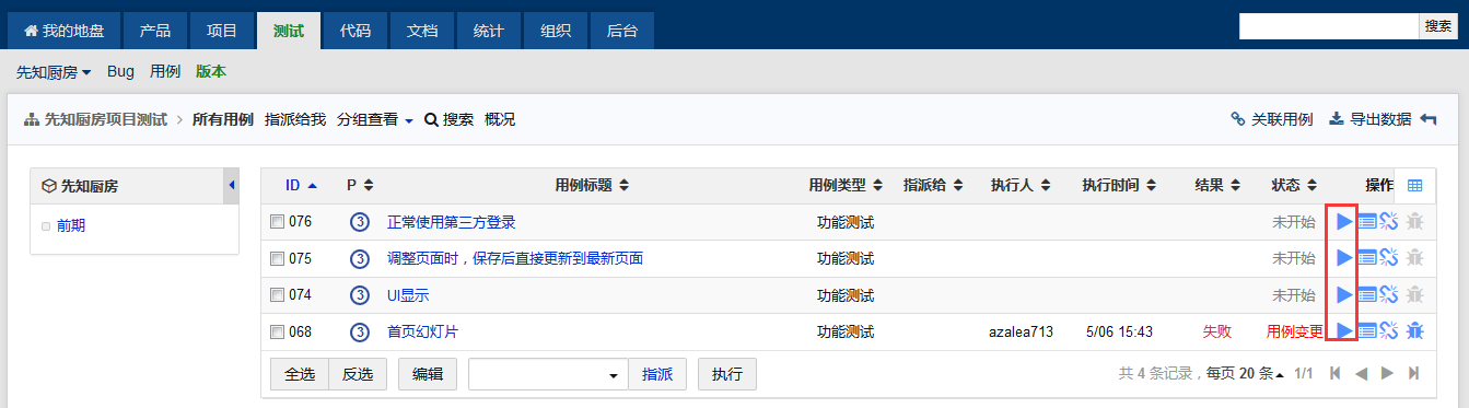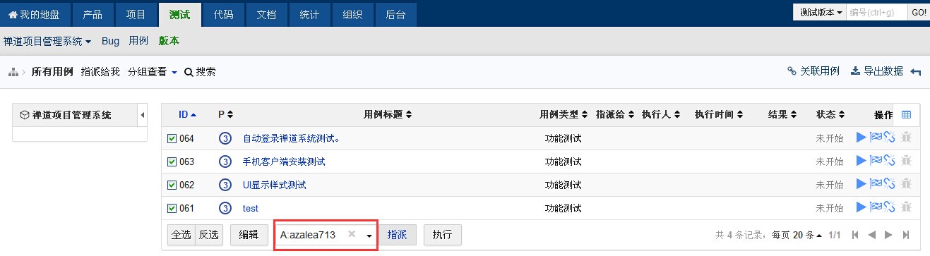 在版本(测试任务)的用例列表页面,可以点选用例,将其指派给某一个人来执行。