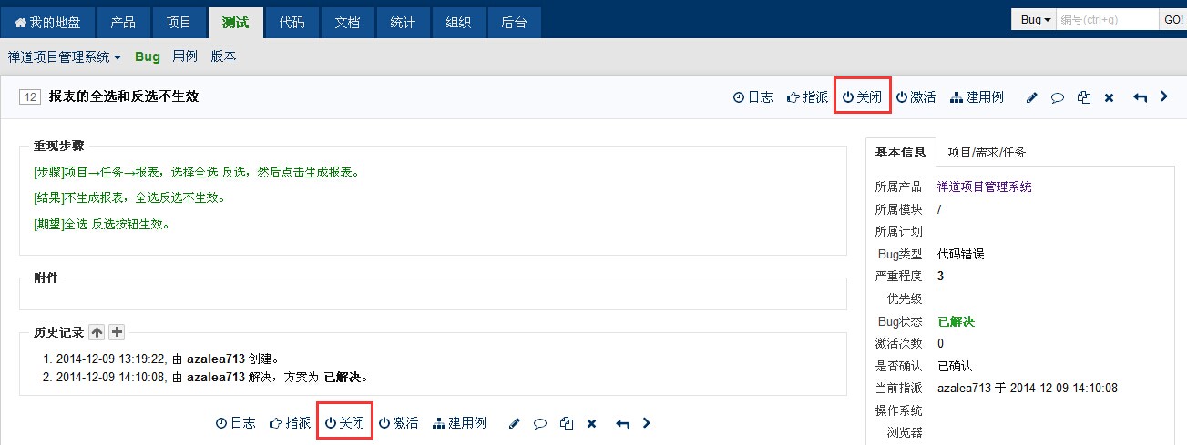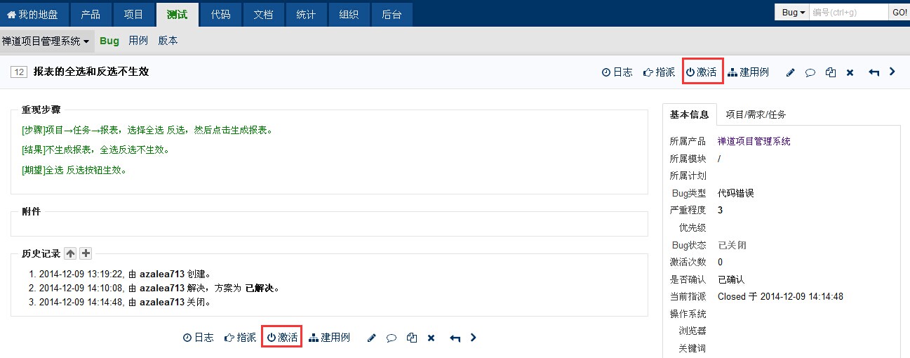 还有一种情况就是bug关闭之后,过了一段时间,bug又重现了,也需要重新激活。