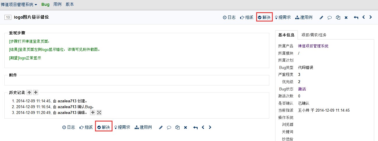 开发人员所需要做的事情便是处理自己负责bug,并在禅道中登记解决方案: