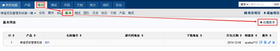 1.开发人员登录系统,进入项目视图,点击版本