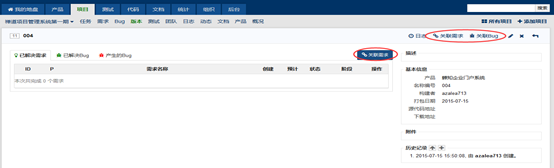 3.版本创建完成以后,在版本详情页关联相对应的需求或者Bug