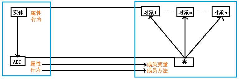在学习C++之前我们一直说面向过程,也就是对于一个需要解决的问题,进行分析,得出每个步骤的实现和实现顺序的过程。所以自然而然的就能够进行面向过程编程,既只需用函数实现这些步骤,然后在使用的时候一个一个进行调用即可。但是为了实现代码的可移植性和可扩展性,就有了面向对象。就是把构成问题的事物分解成各个对象,然后描述某一类对象在解决整个问题步骤中的行为。用一幅图来描述面向对象编程的过程。
