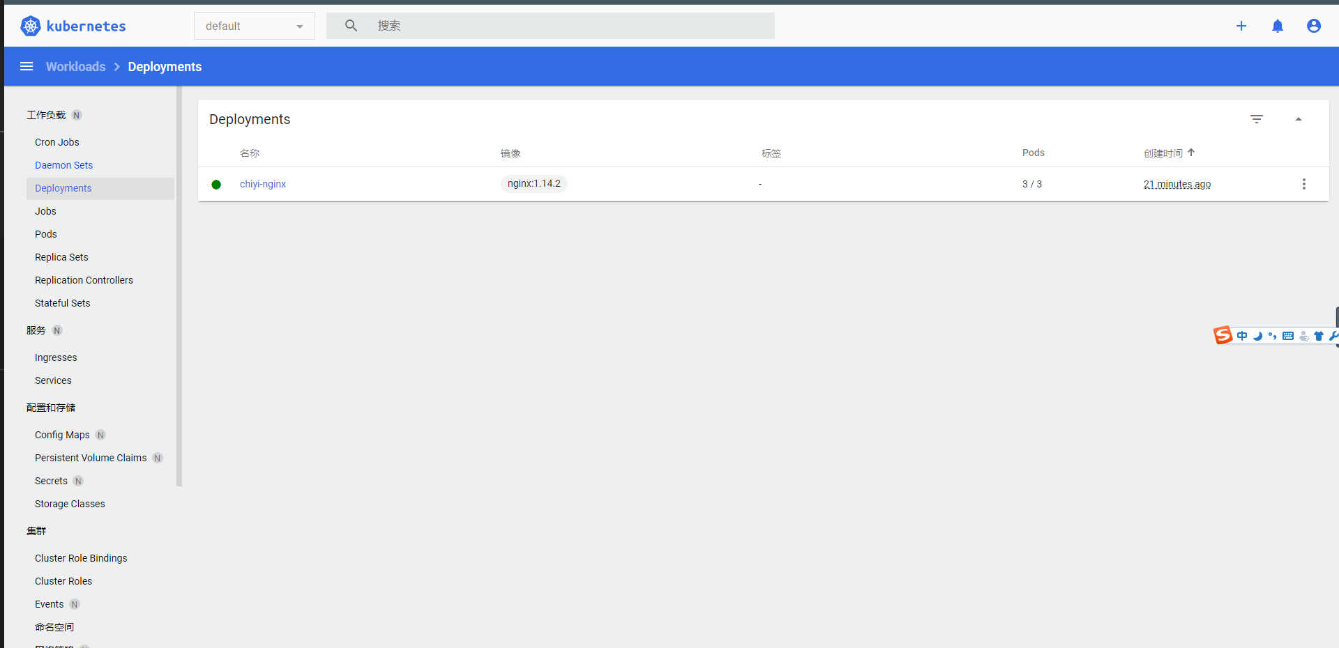 spec:replicas: 3selector:matchLabels:app: chiyi-nginxtemplate:metadata:labels:app: chiyi-nginxspec:containers:- name: nginximage: nginx:1.14.2ports:- containerPort: 80