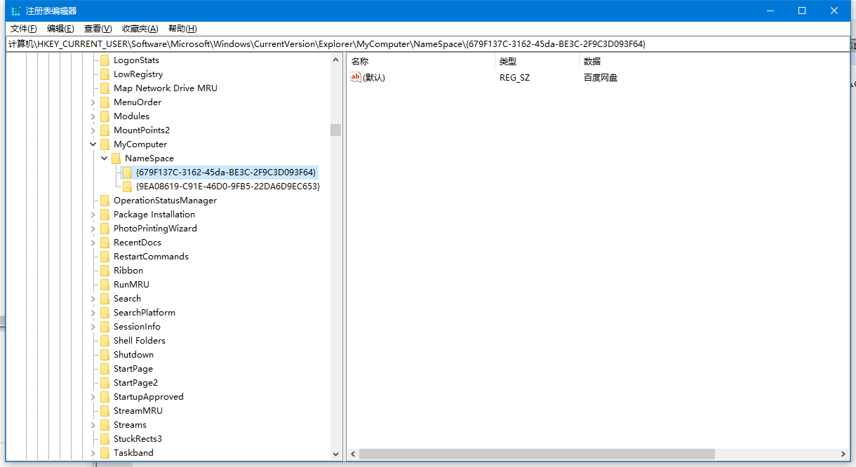 计算机\HKEY_CURRENT_USER\Software\Microsoft\Windows\CurrentVersion\Explorer\MyComputer\NameSpace\