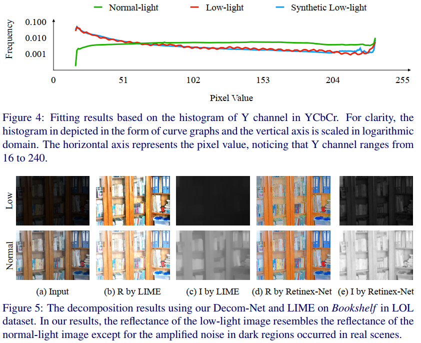 分解观测图像的一种方法是直接在低光输入图像上估计反射率和照度,并精心制作了约束条件。由于Eq.(1)的病态性很强,很难设计出适合各种场景的约束函数。因此,我们试图以数据驱动的方式来解决这个问题。