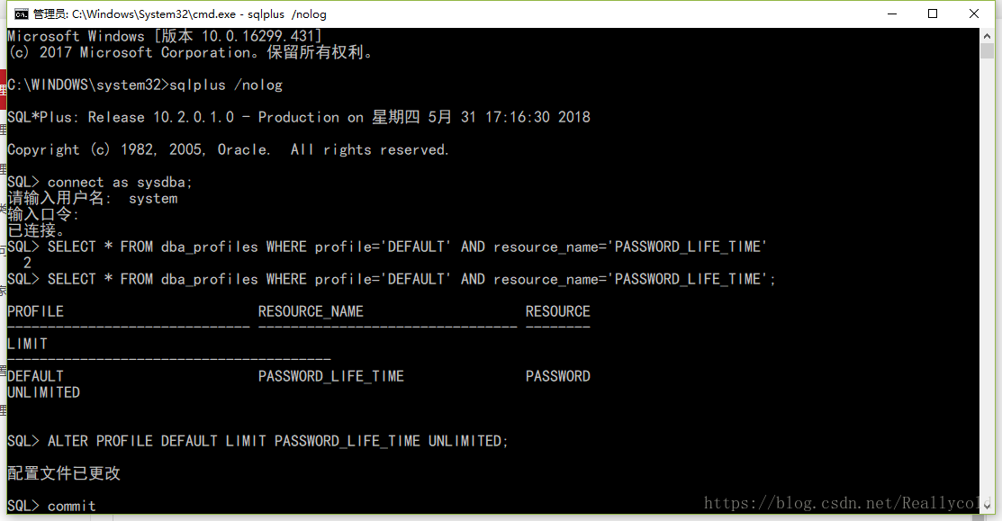 第三步 : SELECT * FROM dba_profiles WHERE profile='DEFAULT' AND resource_name='PASSWORD_LIFE_TIME';