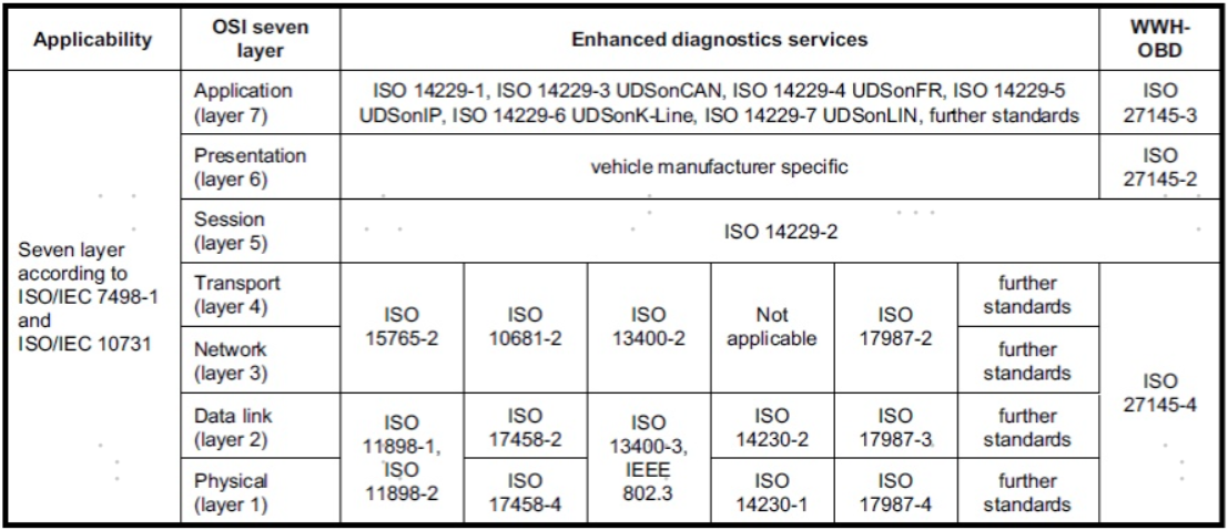 UDS包含了ISO 14229下属的7个子协议,其中ISO 14229-2还是会话层的,所以UDS仅包括应用层的说法也是错误的。