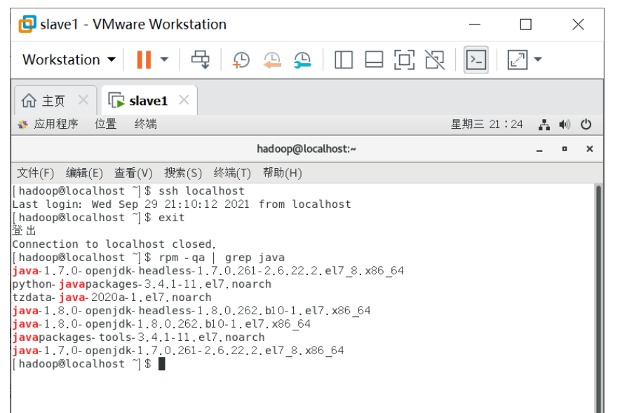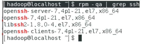 [hadoop@localhost ~]$ rpm -qa | grep ssh